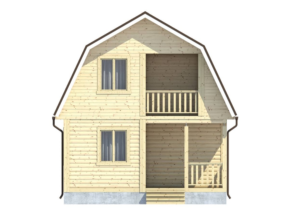 Проект полутораэтажной бани из профилированного бруса 9 с балконом и террасой. Проект обращает на себя внимание сочетанием функциональности и лаконичного дизайна бани.