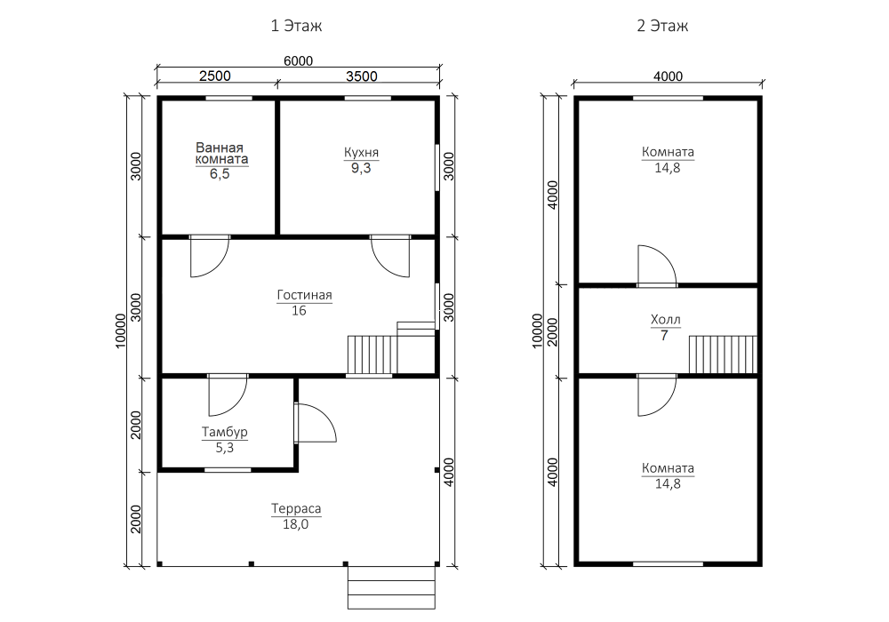| Под усадку (без отделки) | 6х10 | Cруб дома 190х140 мм | 1390000 | Заказать |