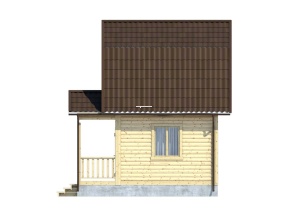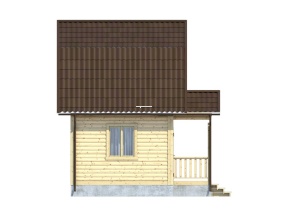 Проект 4 – оригинальное решение полутораэтажного дома из бруса с . Общая площадь помещений по этому проекту –30.1 кв.м., размер дома – 5х4 м..