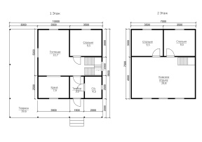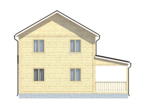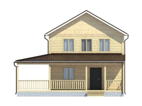 Проект 66 – оригинальное решение двухэтажного дома из бруса с большой террасой. Общая площадь помещений по этому проекту –96 кв.м., размер дома – 9,5х10 м..