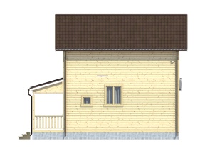 Компания «Дача из бруса» не только поставляет домокомплекты по данному проекту , но и может выполнить работы по его установке – от нулевого цикла и подводки коммуникаций до финишной отделки.