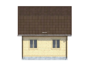 В каждой комнате имеются двойные зимние окна размером 1x1,2 м. Высота потолков первого этажа – 2,45 м. Здание имеет двускатную крышу, укрывающую дом от непогоды и снега. Крыша покрывается ондулином (выберите цвет из трех предложенных: красный, зеленый, коричневый). Контраст кровли с основной частью дома делает экстерьер особенно привлекательным.