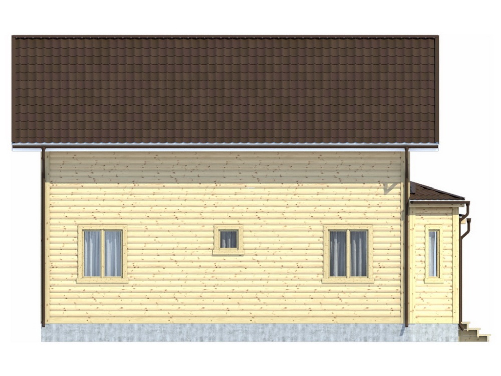 В каждой комнате имеются двойные зимние окна размером 1x1,2 м. Высота потолков первого этажа – 2,45 м. Здание имеет двускатную крышу, укрывающую дом от непогоды и снега. Крыша покрывается ондулином (выберите цвет из трех предложенных: красный, зеленый, коричневый). Контраст кровли с основной частью дома делает экстерьер особенно привлекательным.