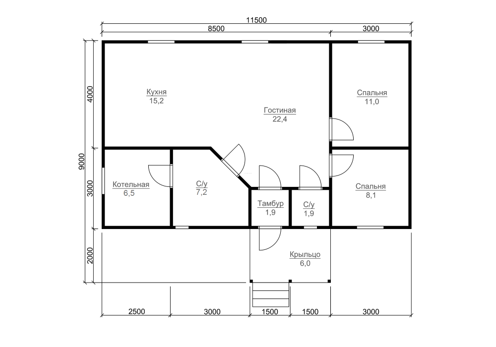 | Крыша | Двускатная, ломаная или вальмовая в соответствии с проектом. | |