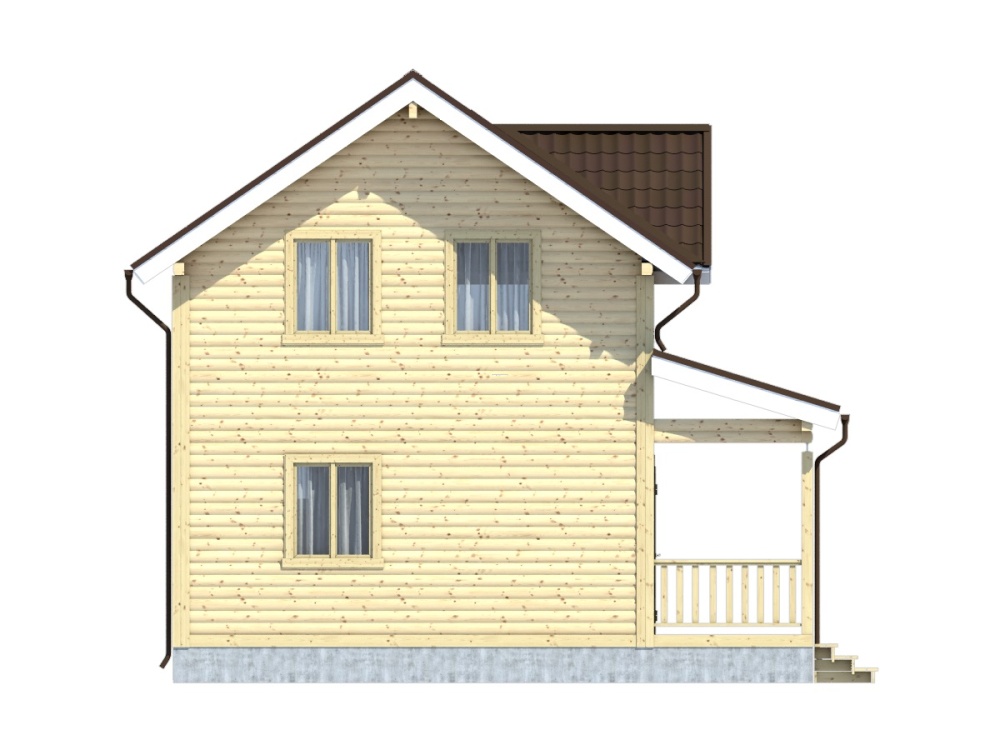 В каждой комнате имеются двойные зимние окна размером 1x1,2 м. Высота потолков первого этажа – 2,45 м. Здание имеет двускатную крышу, укрывающую дом от непогоды и снега. Крыша покрывается ондулином (выберите цвет из трех предложенных: красный, зеленый, коричневый). Контраст кровли с основной частью дома делает экстерьер особенно привлекательным.