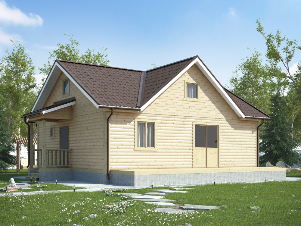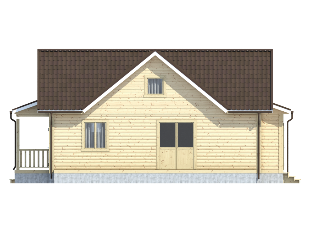 В каждой комнате имеются двойные зимние окна размером 1x1,2 м. Высота потолков первого этажа – 2,45 м. Здание имеет двускатную крышу, укрывающую дом от непогоды и снега. Крыша покрывается ондулином (выберите цвет из трех предложенных: красный, зеленый, коричневый). Контраст кровли с основной частью дома делает экстерьер особенно привлекательным.