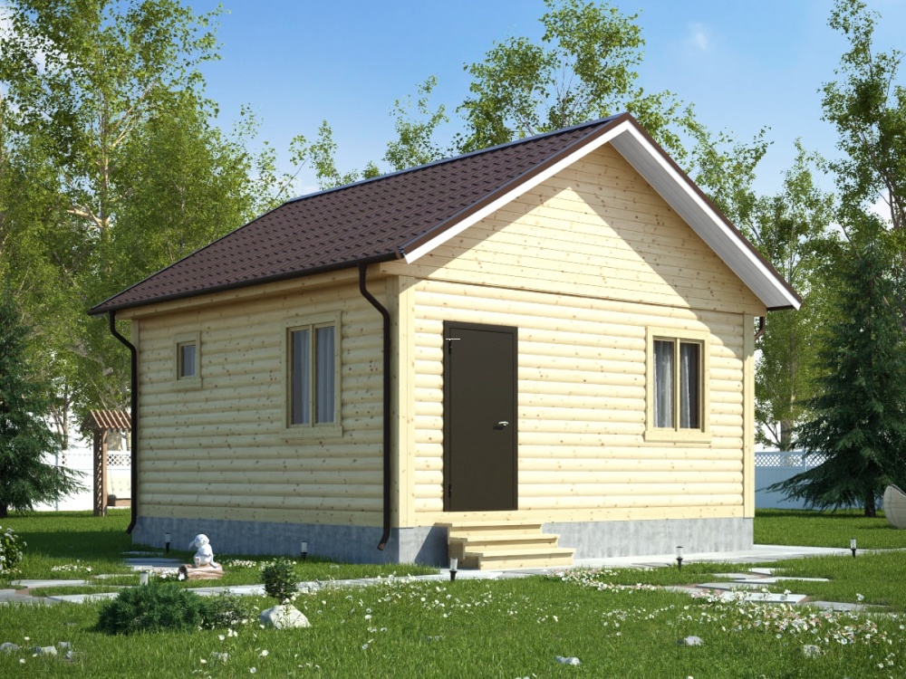 В каждой комнате имеются двойные зимние окна размером 1x1,2 м. Высота потолков первого этажа – 2,45 м. Здание имеет двускатную крышу, укрывающую дом от непогоды и снега. Крыша покрывается ондулином (выберите цвет из трех предложенных: красный, зеленый, коричневый). Контраст кровли с основной частью дома делает экстерьер особенно привлекательным.